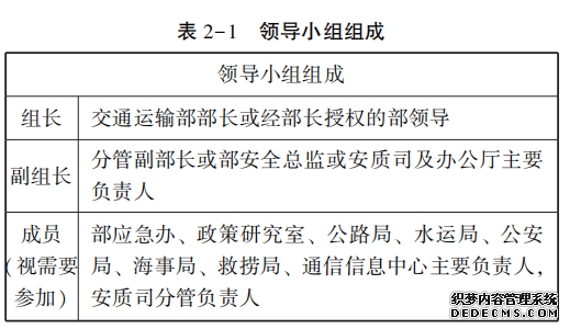 (2) 應急管理隊伍: 主要由各級交通運輸主管部門的安