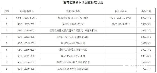 近日,國家標準委批準發布了9項煤炭領域國家標準,涉及煤層氣開發、煤炭資源勘查評價等領域。