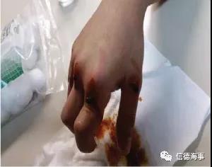 -2018年4月9日, 某輪一水手在開貨艙下艙道門時因猛用力掀起道門蓋致其反彈后,該水手本能地想用右手抓住道門蓋但因道門蓋的重量及沖力導致其右手被道門蓋卡夾而嚴重受傷。