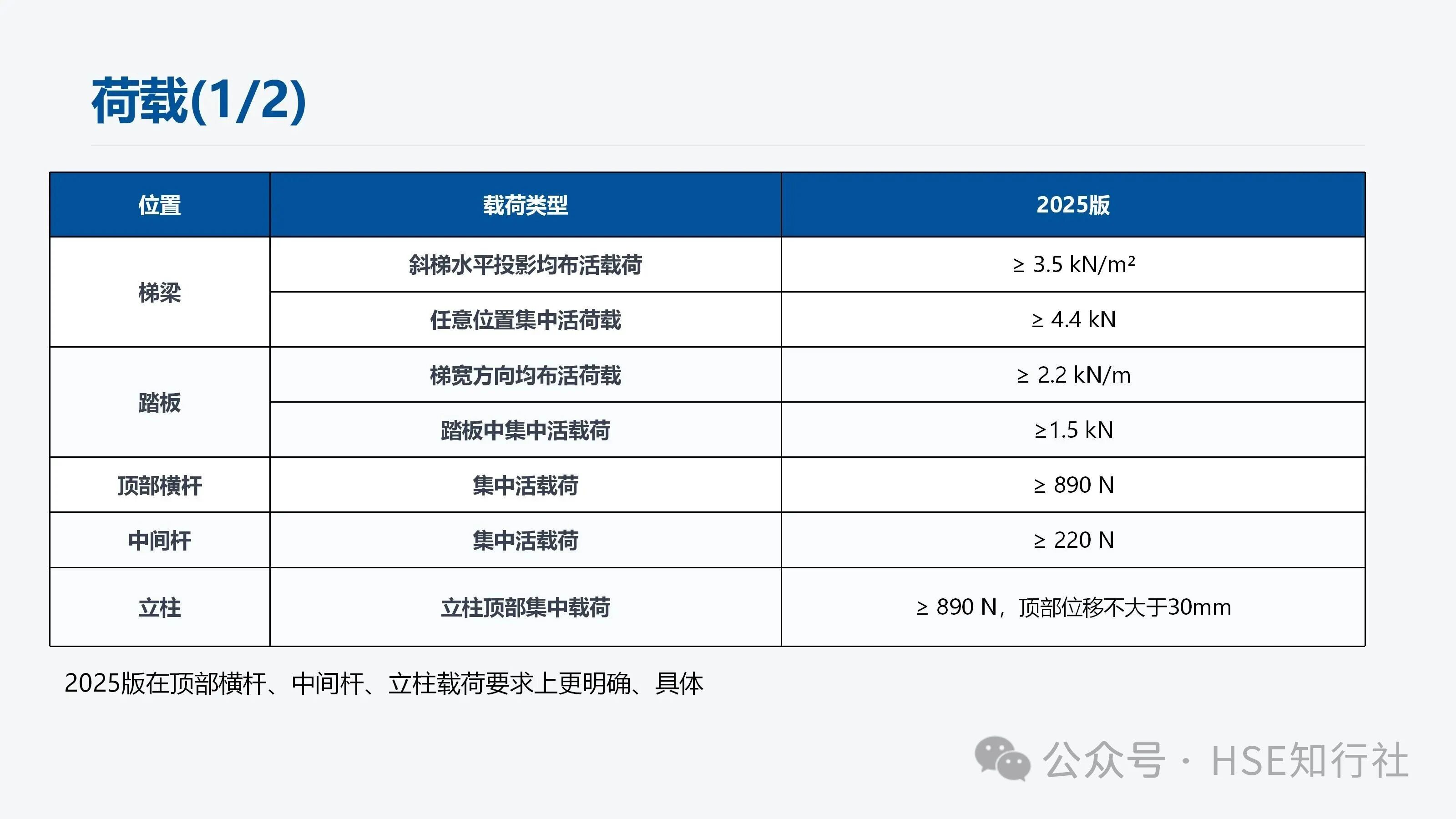 梯梁、踏板、頂部橫桿、中間桿、立柱荷載如下: