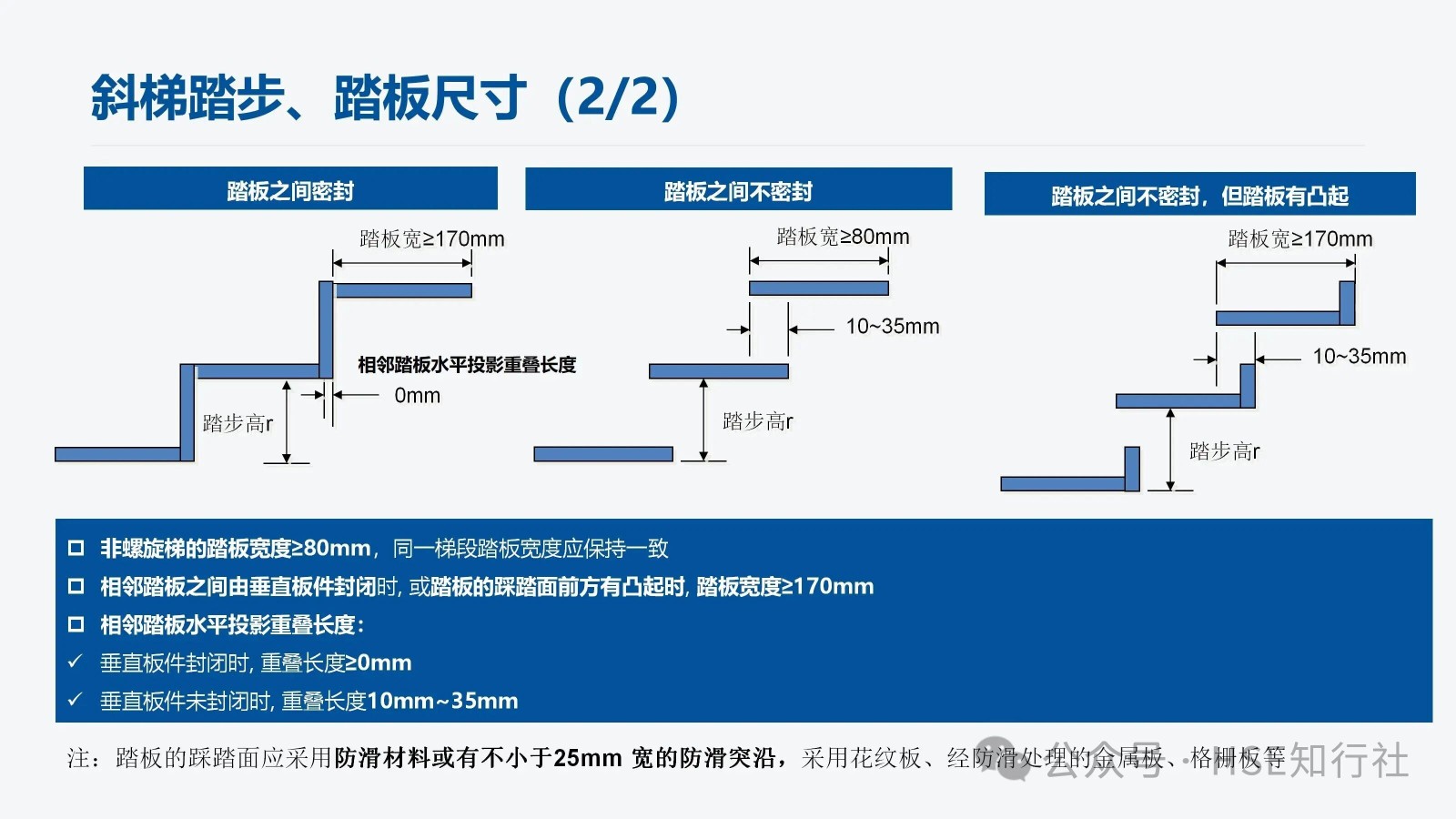 注:踏板的踩踏面應采用防滑材料或有不小于25mm 寬的防滑突沿,采用花紋板、經防滑處理的金屬板、格柵板等。