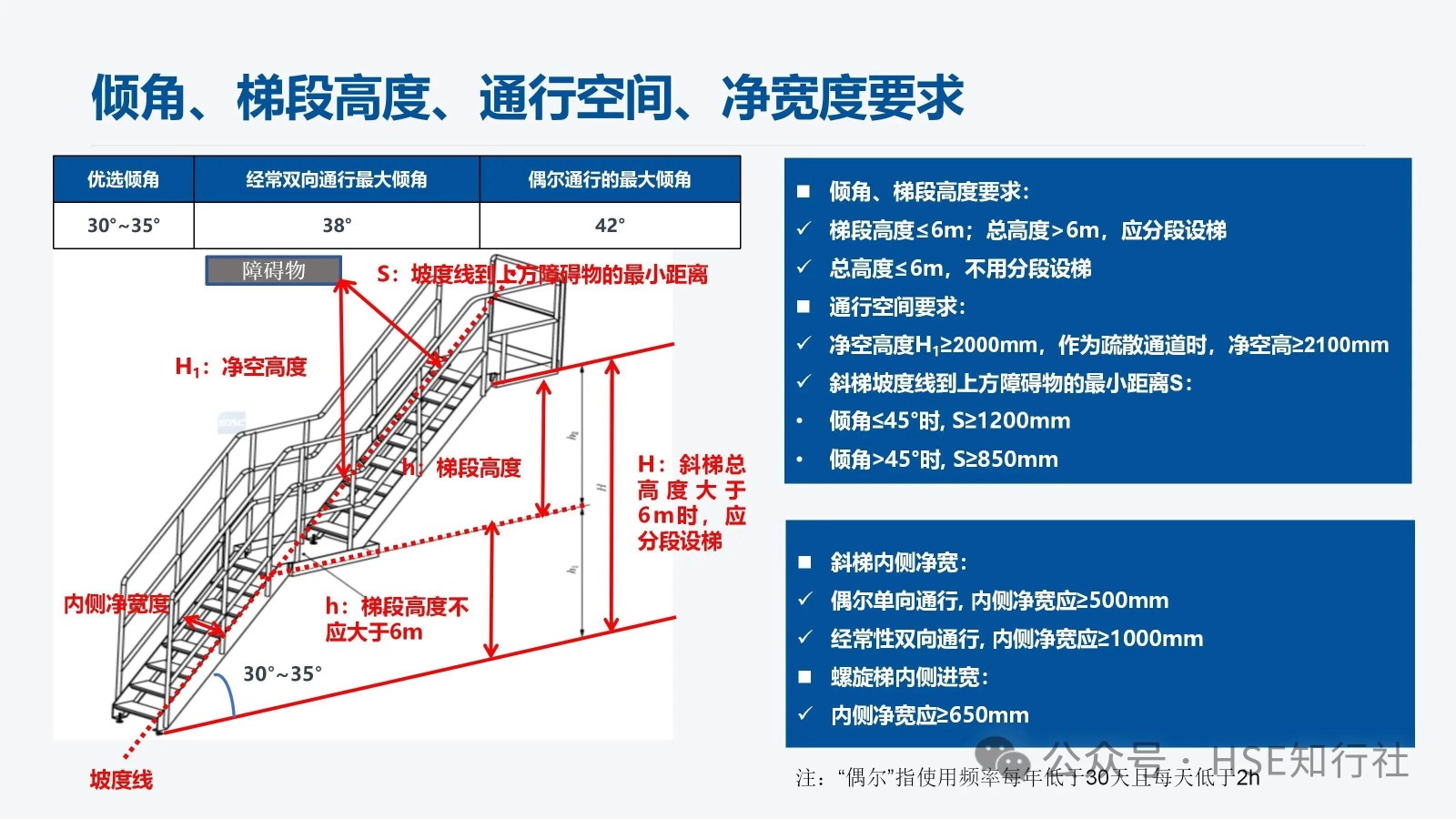 傾角、梯段高度、通行空間、凈寬度要求