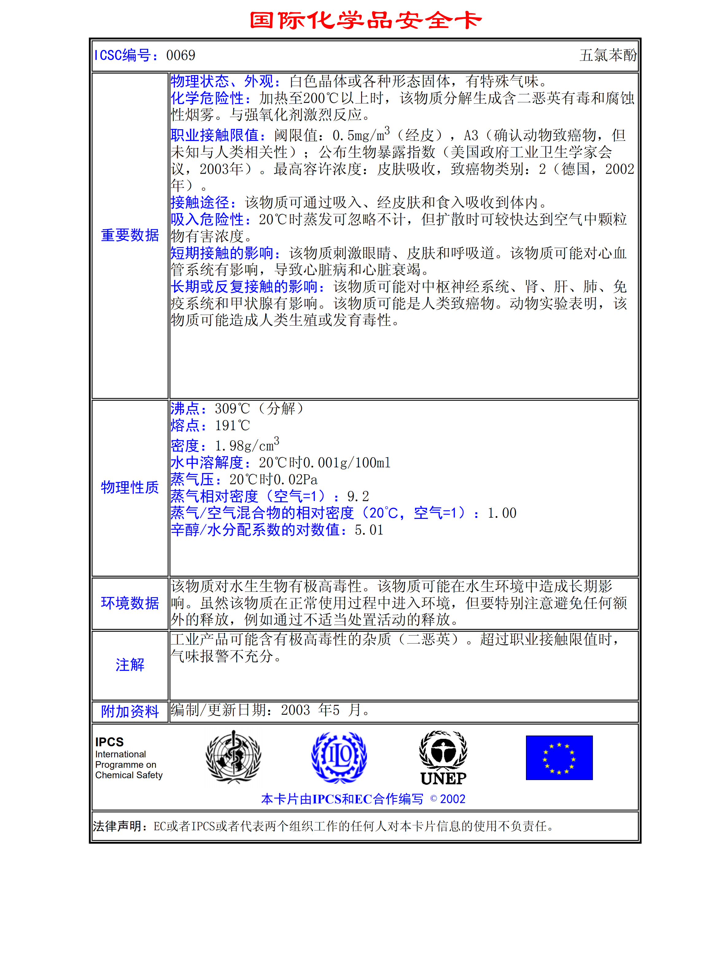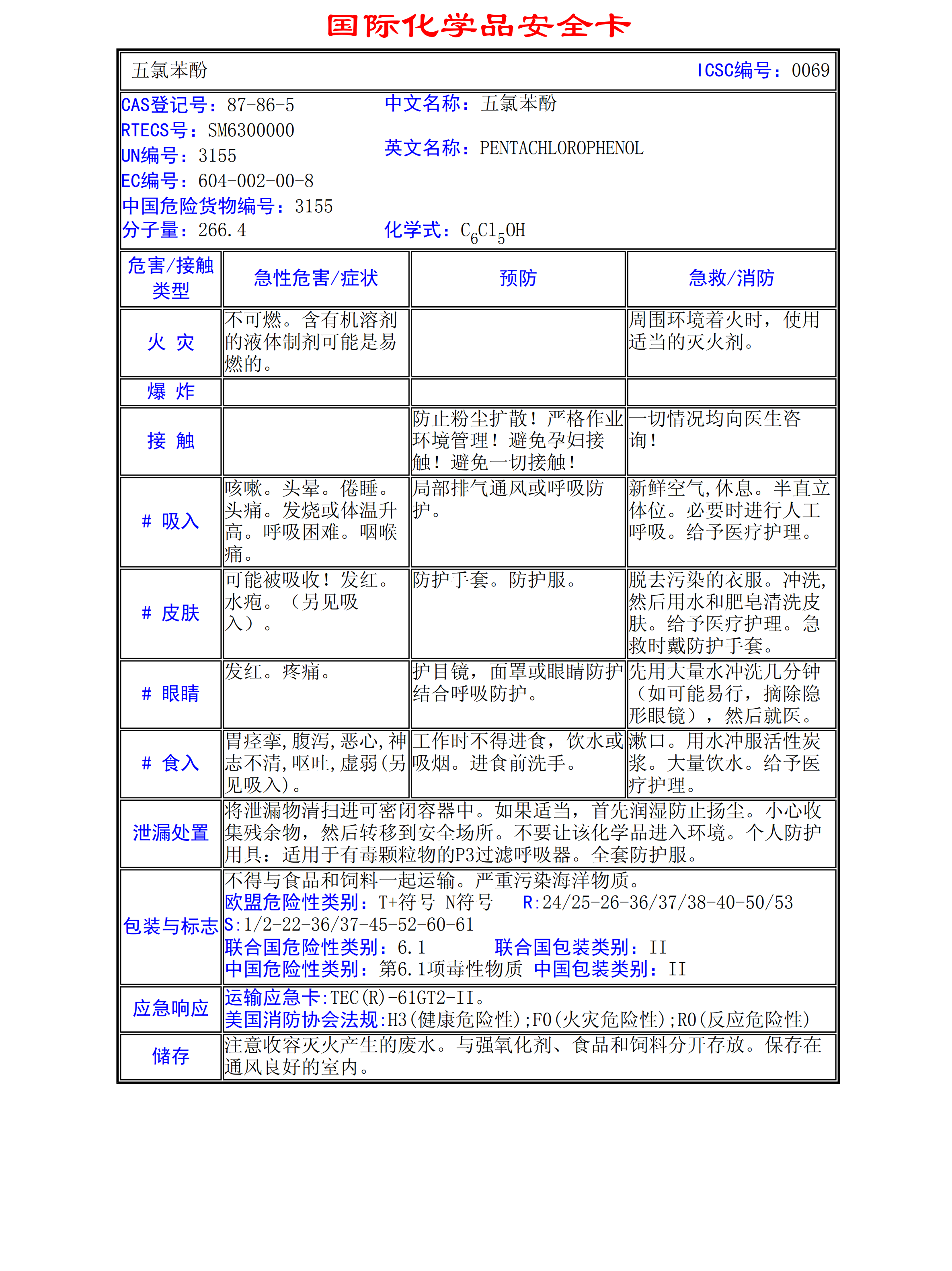 五氯苯酚MSDS