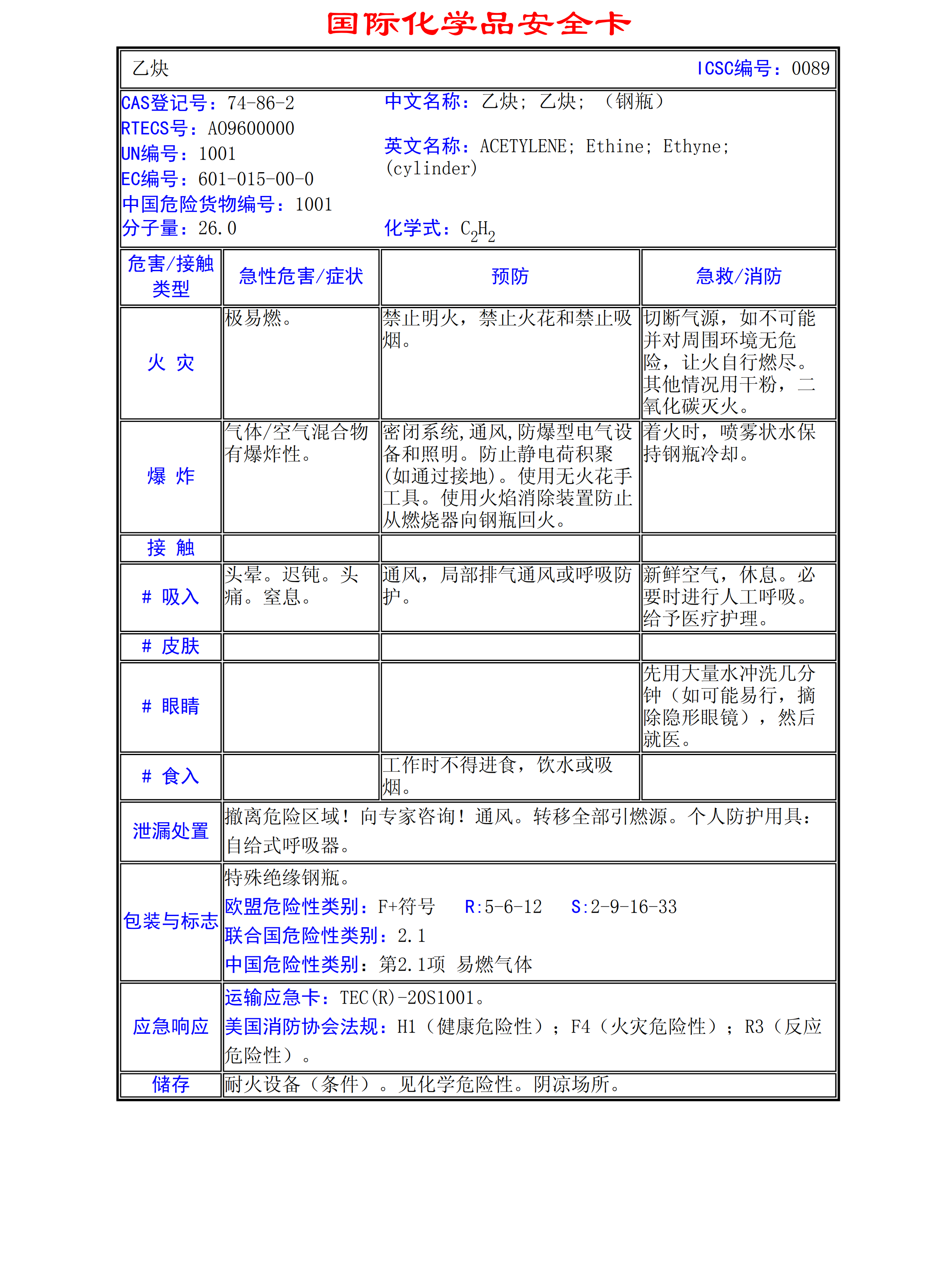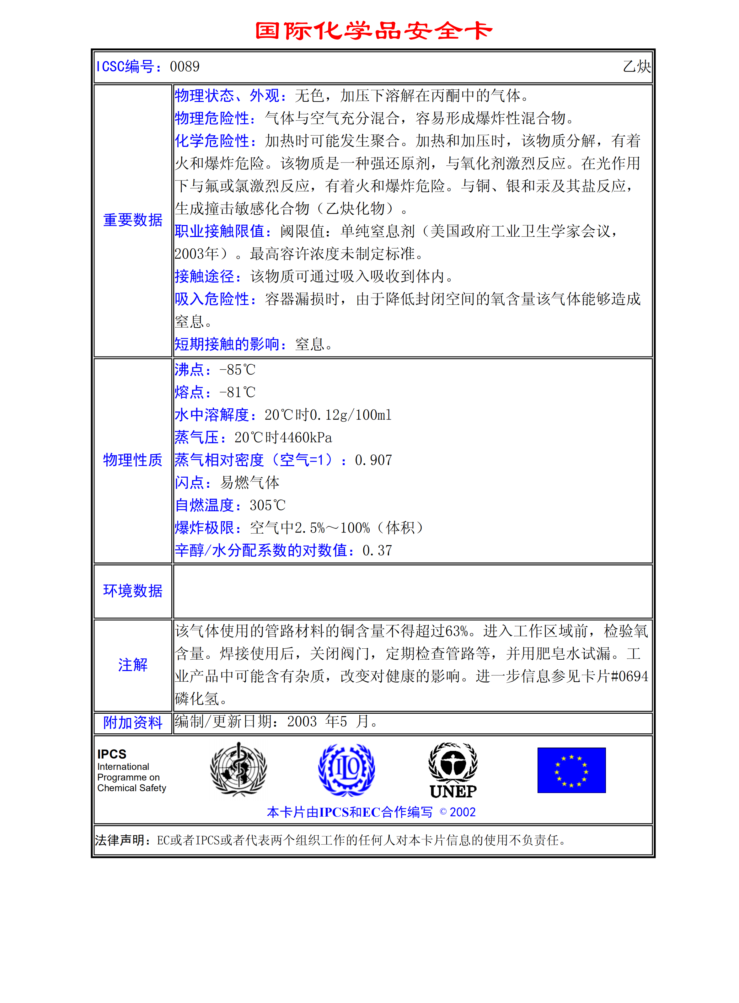 乙炔MSDS