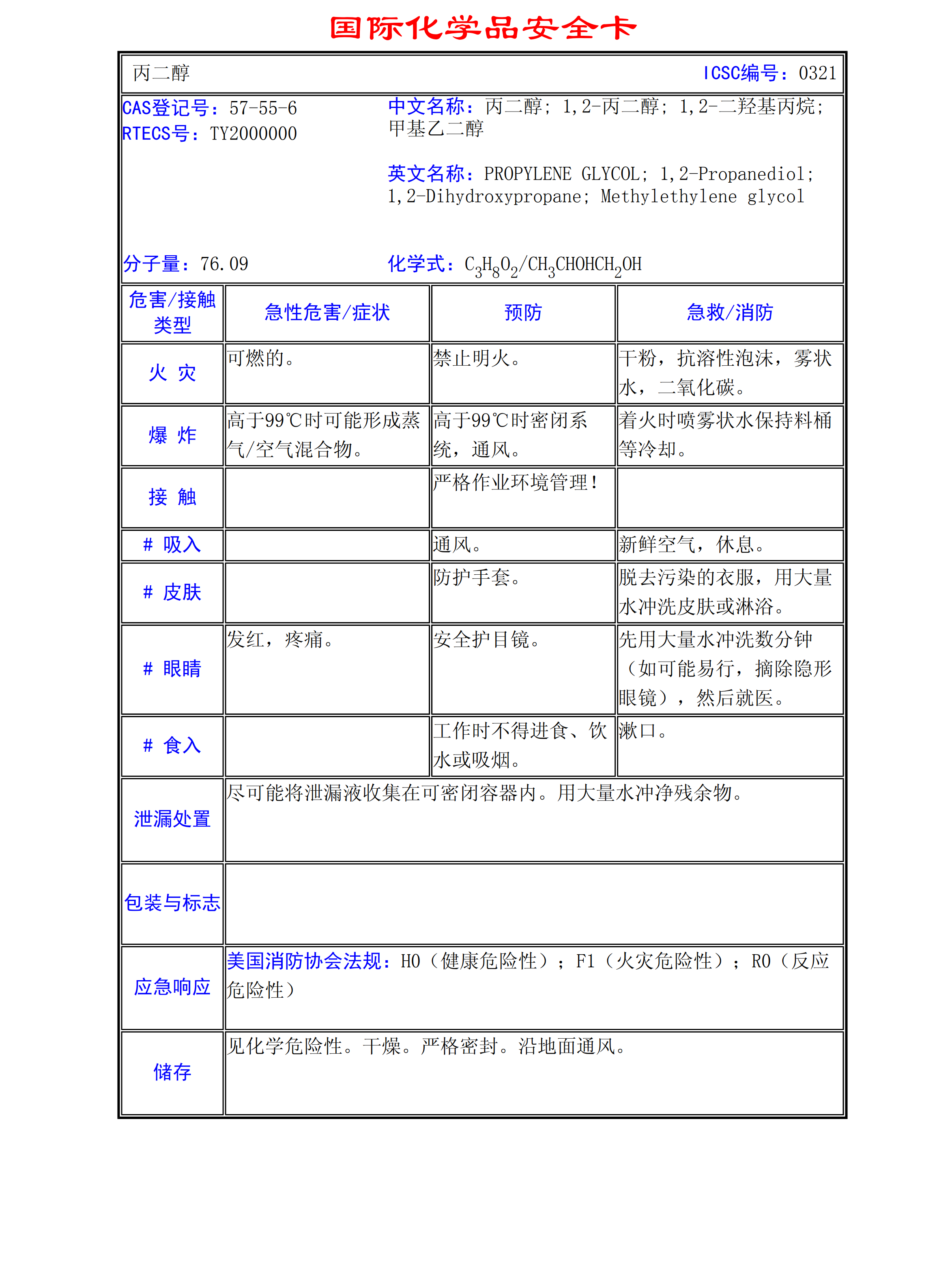 丙二醇MSDS