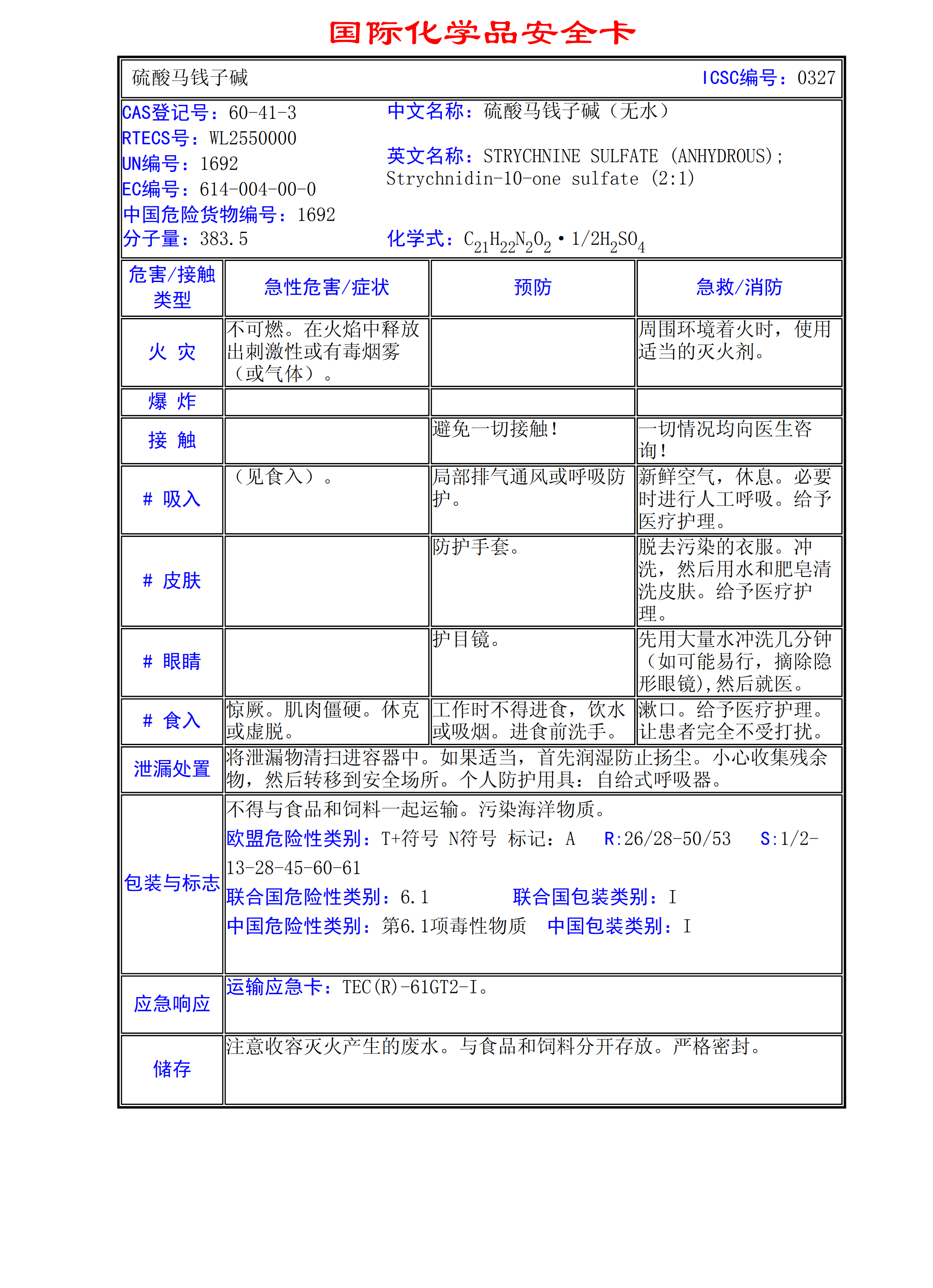 硫酸馬錢子堿MSDS