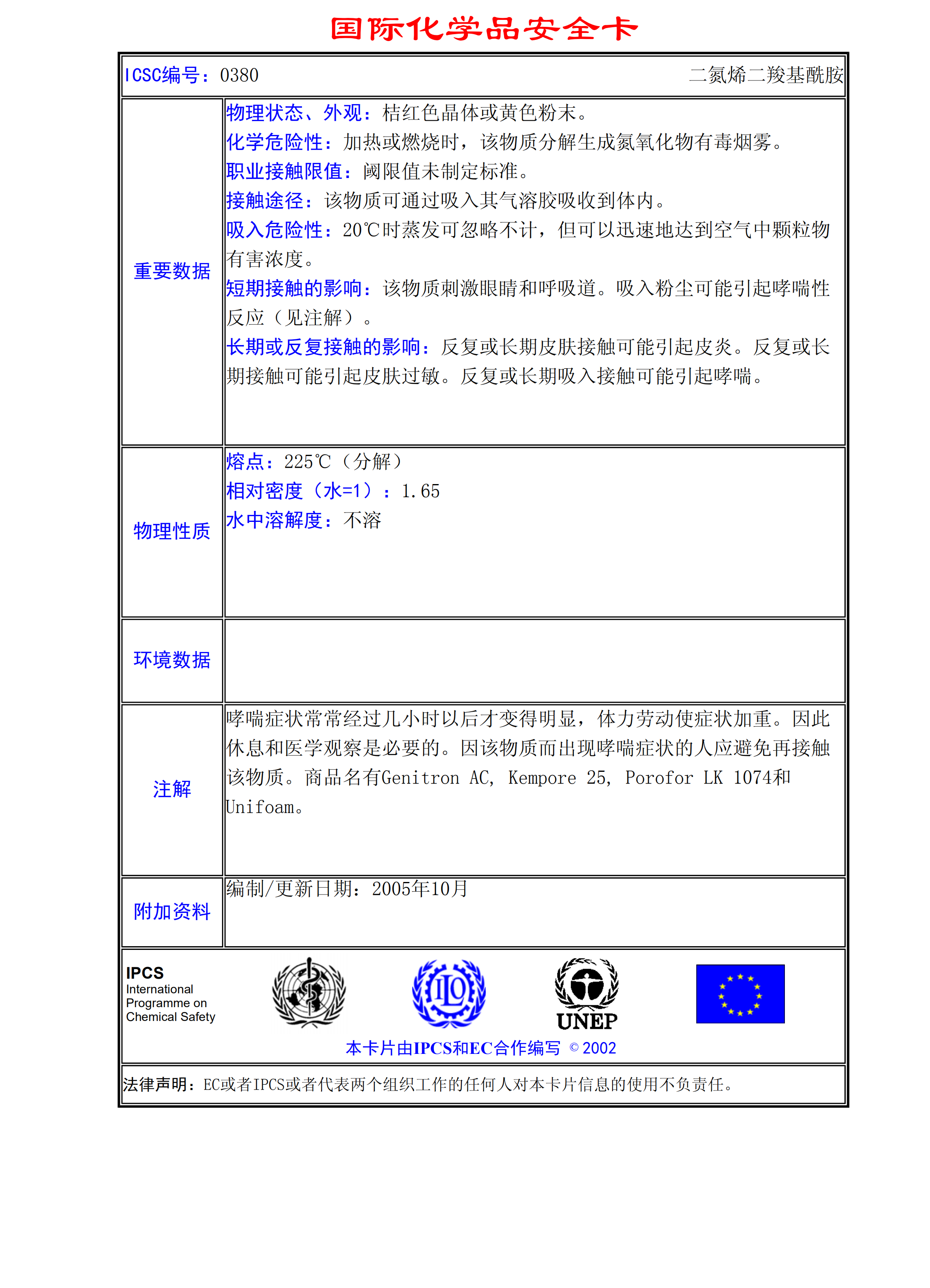 二氮烯二羧基酰胺MSDS
