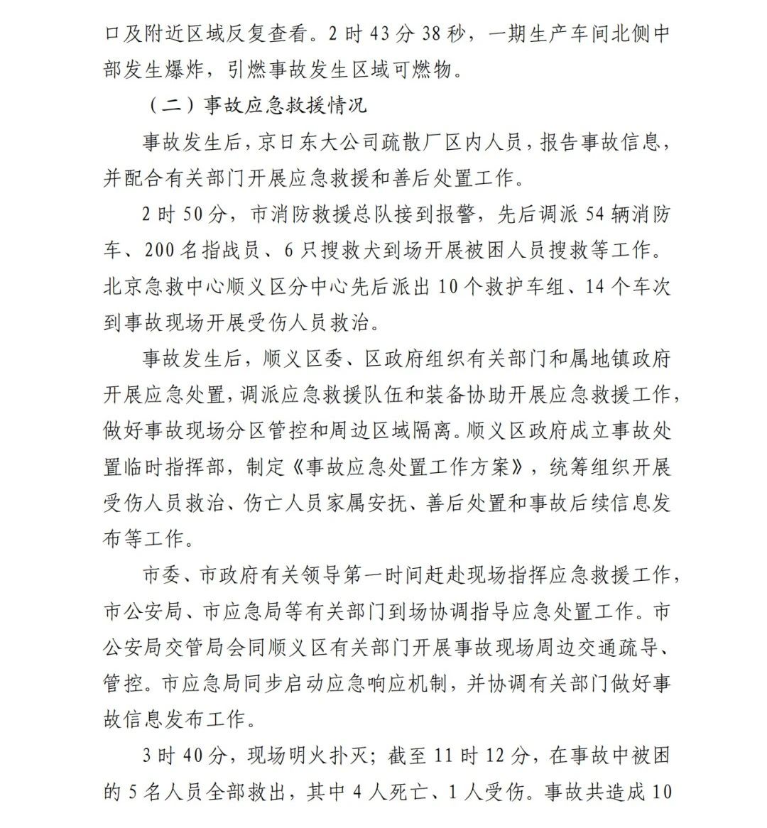 2019年12月3日2時43分許,北京順義區牛欄山鎮的(以下簡稱“京日東大公司”)一期生產車間內發生燃氣爆炸事故,造成4人死亡,10人受傷,直接經濟損失1429.563萬元。