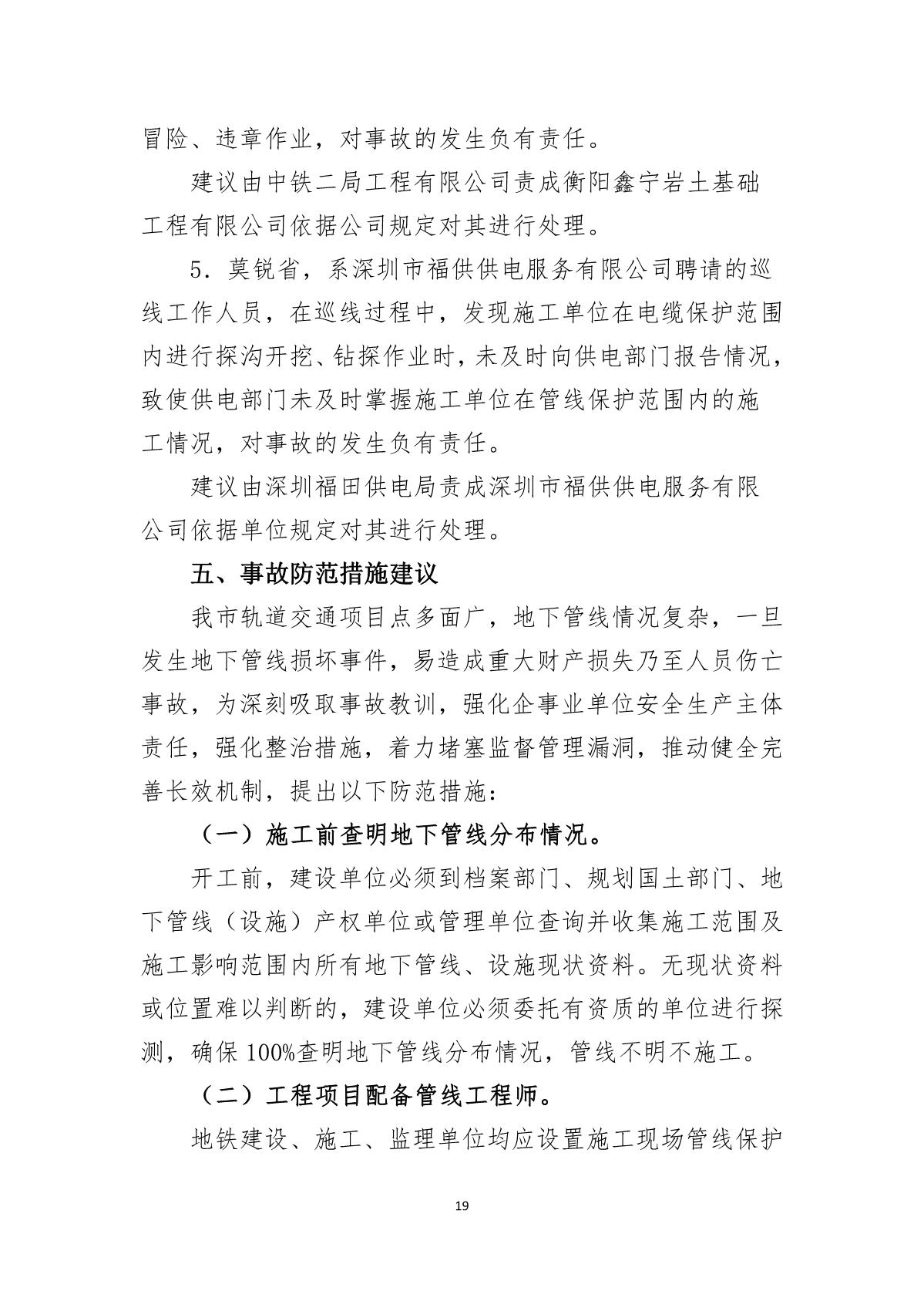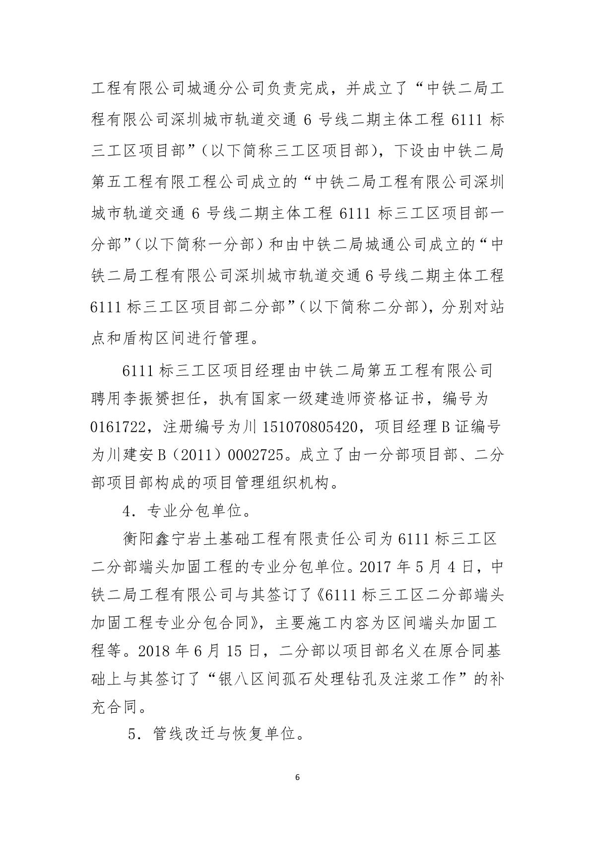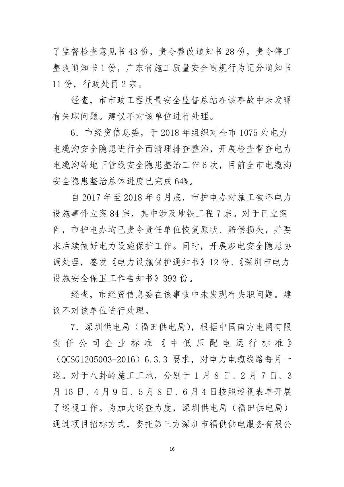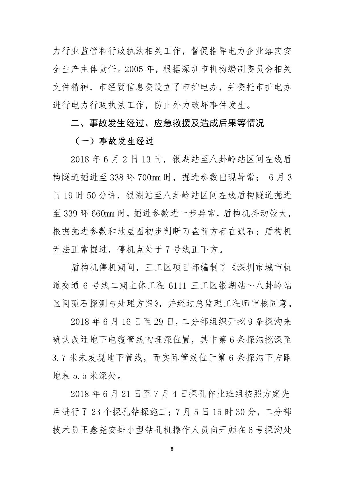 福田區人民政府關于深圳市城市軌道交通6號線二期主體工程6111標“7.05”10kv電力電纜受損事故調查報告