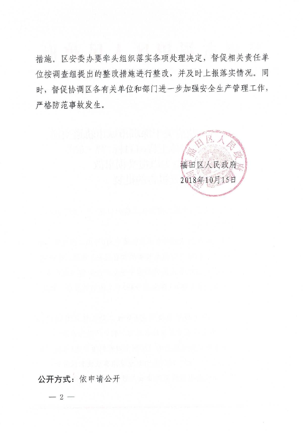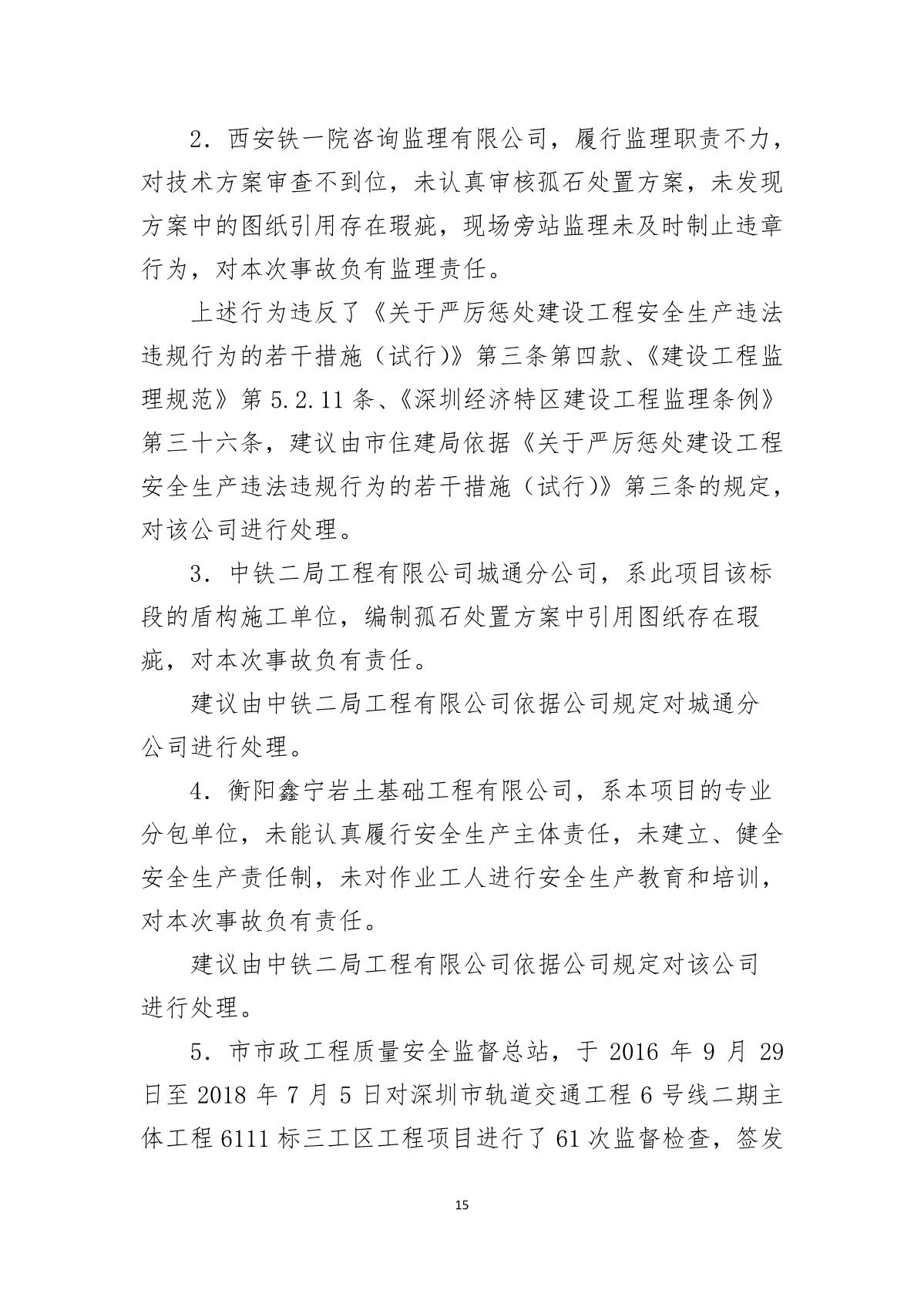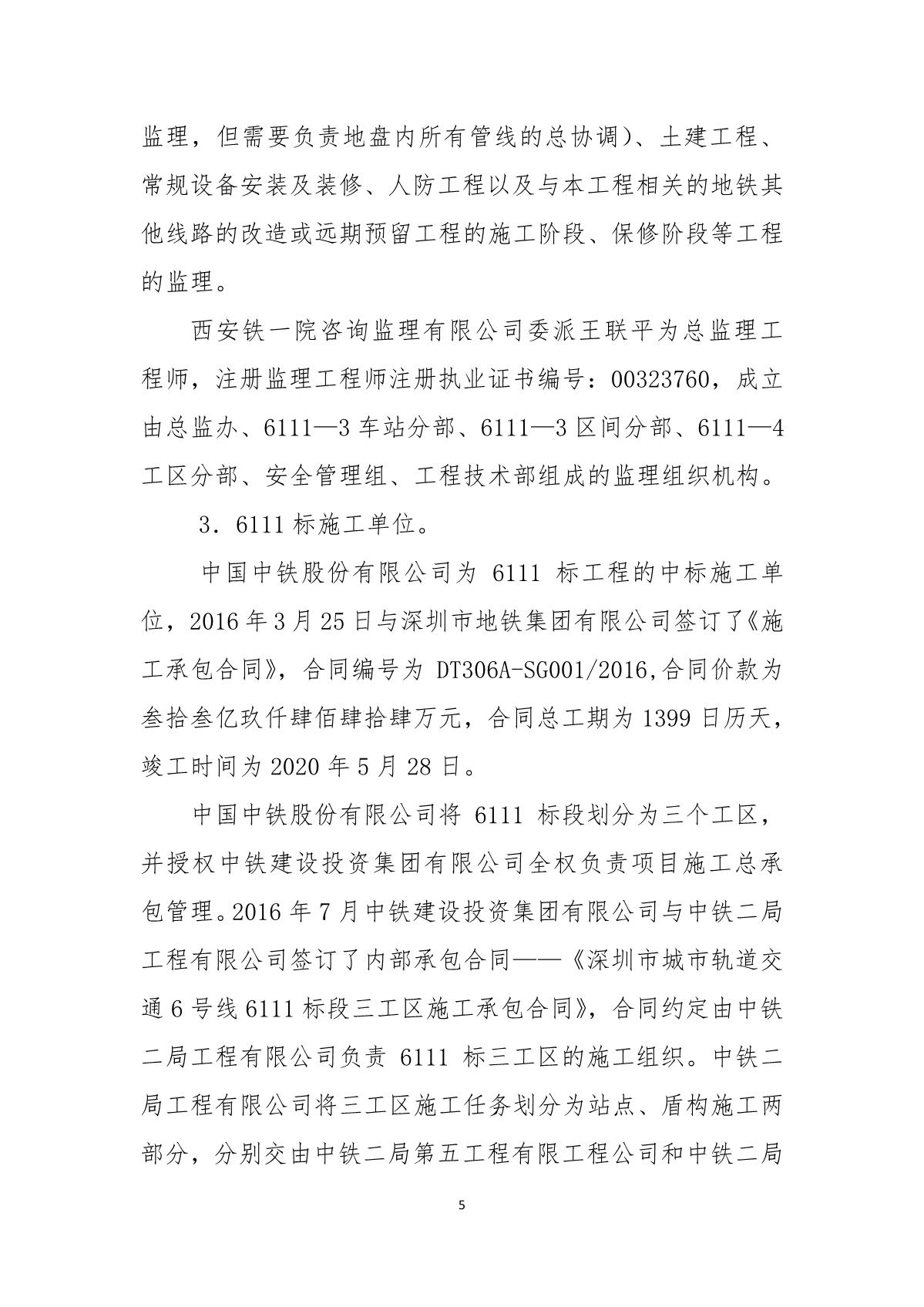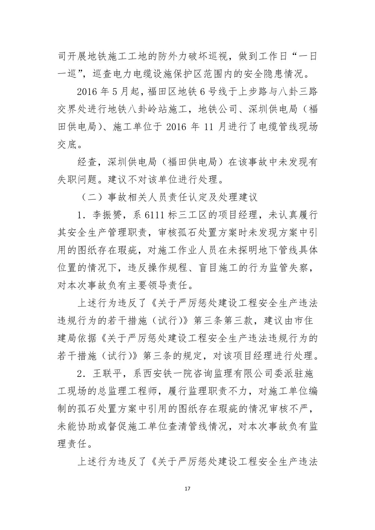 福田區人民政府關于深圳市城市軌道交通6號線二期主體工程6111標“7.05”10kv電力電纜受損事故調查報告