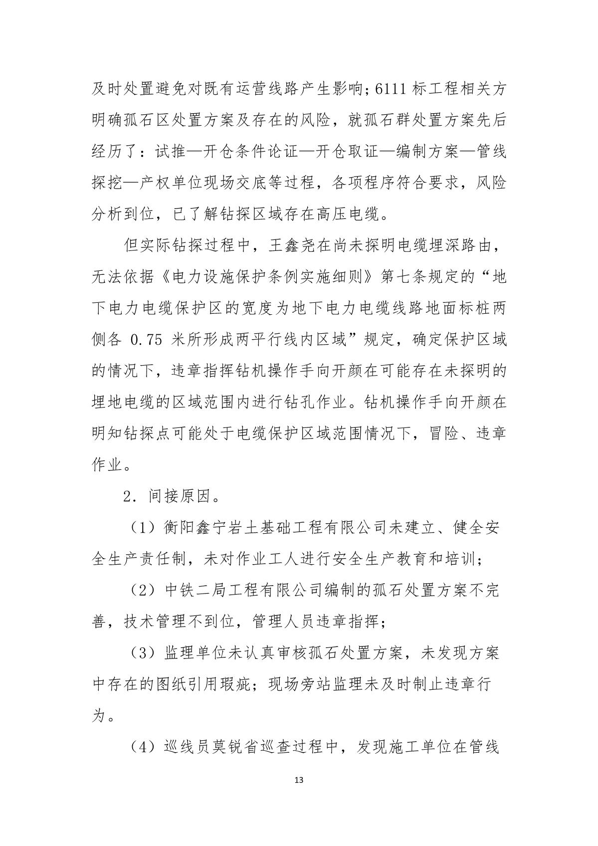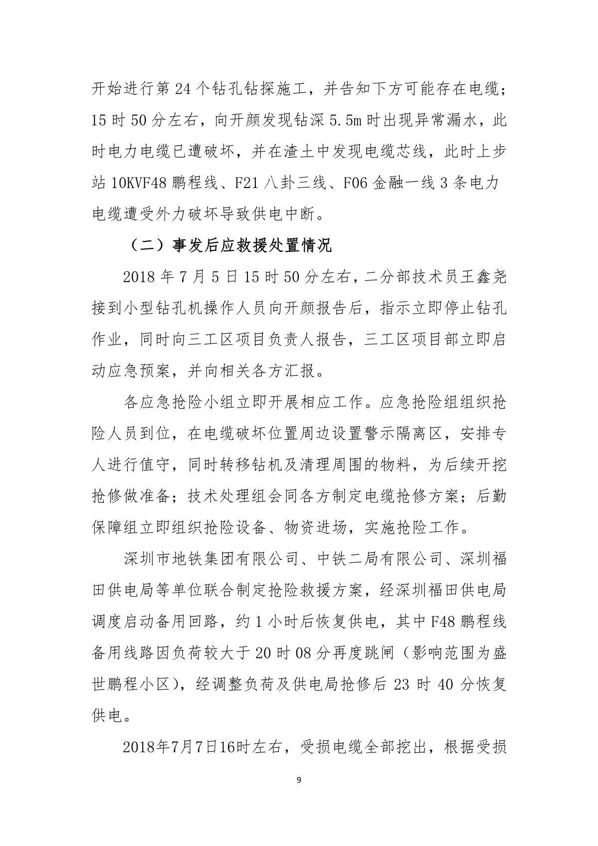 深圳市崗廈北綜合交通樞紐工程“7.07”10kv電力電纜受損事故調查報告