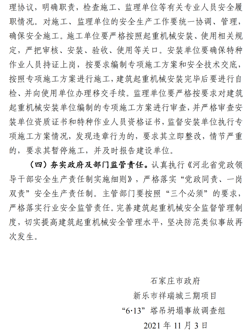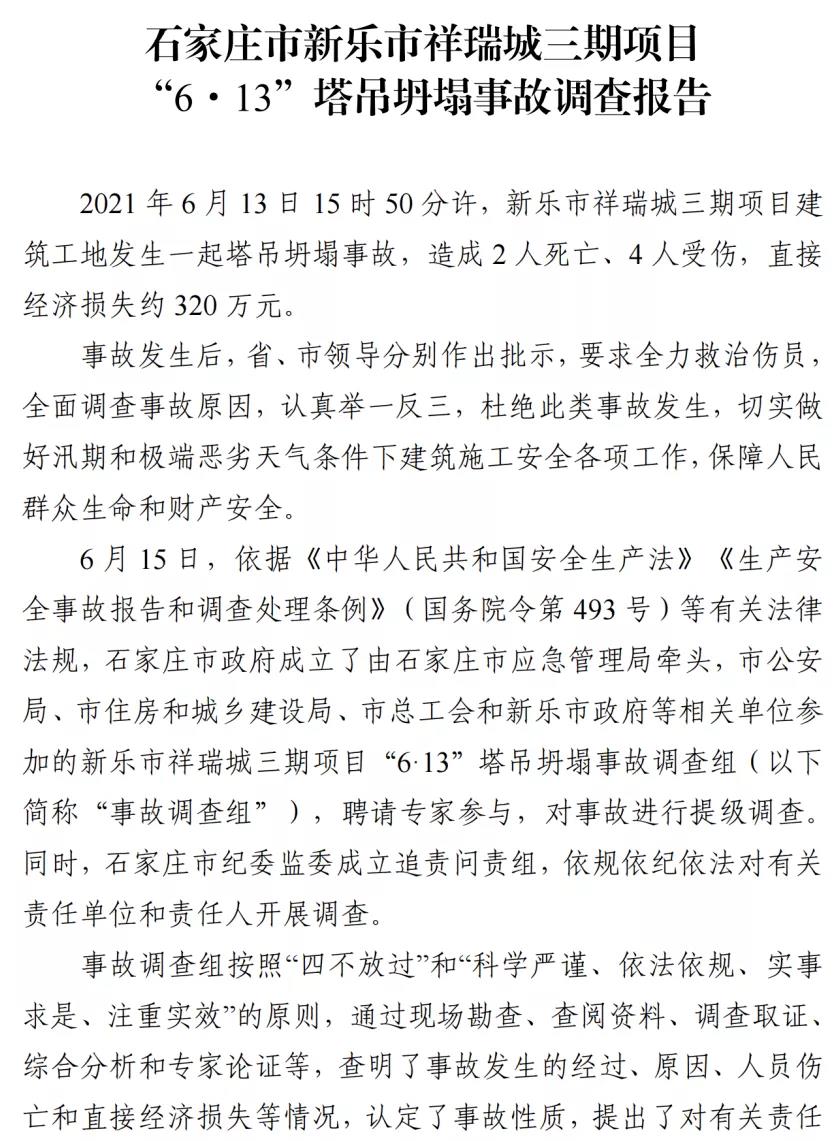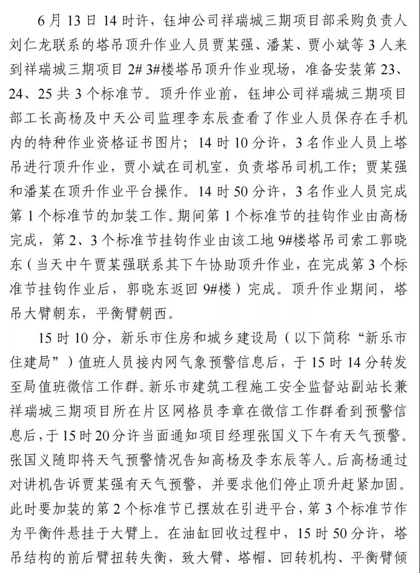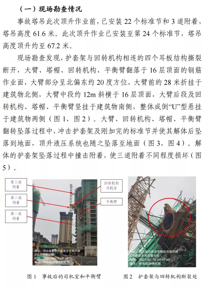 河北石家莊新樂市祥瑞城建筑工地在塔吊頂升作業事故調查報告