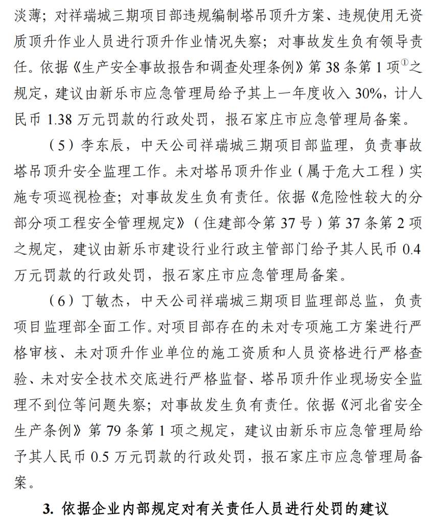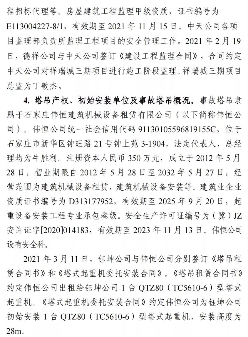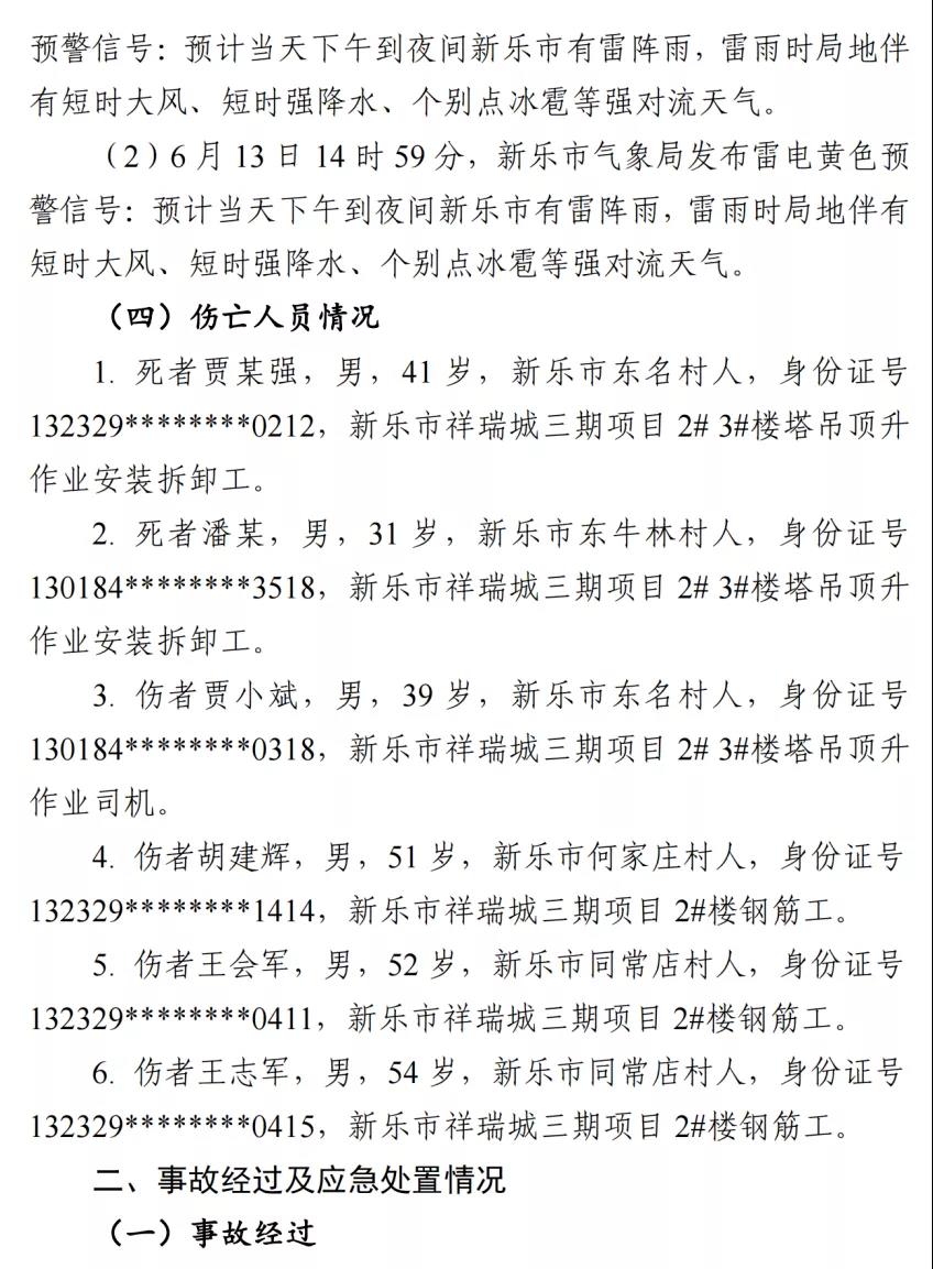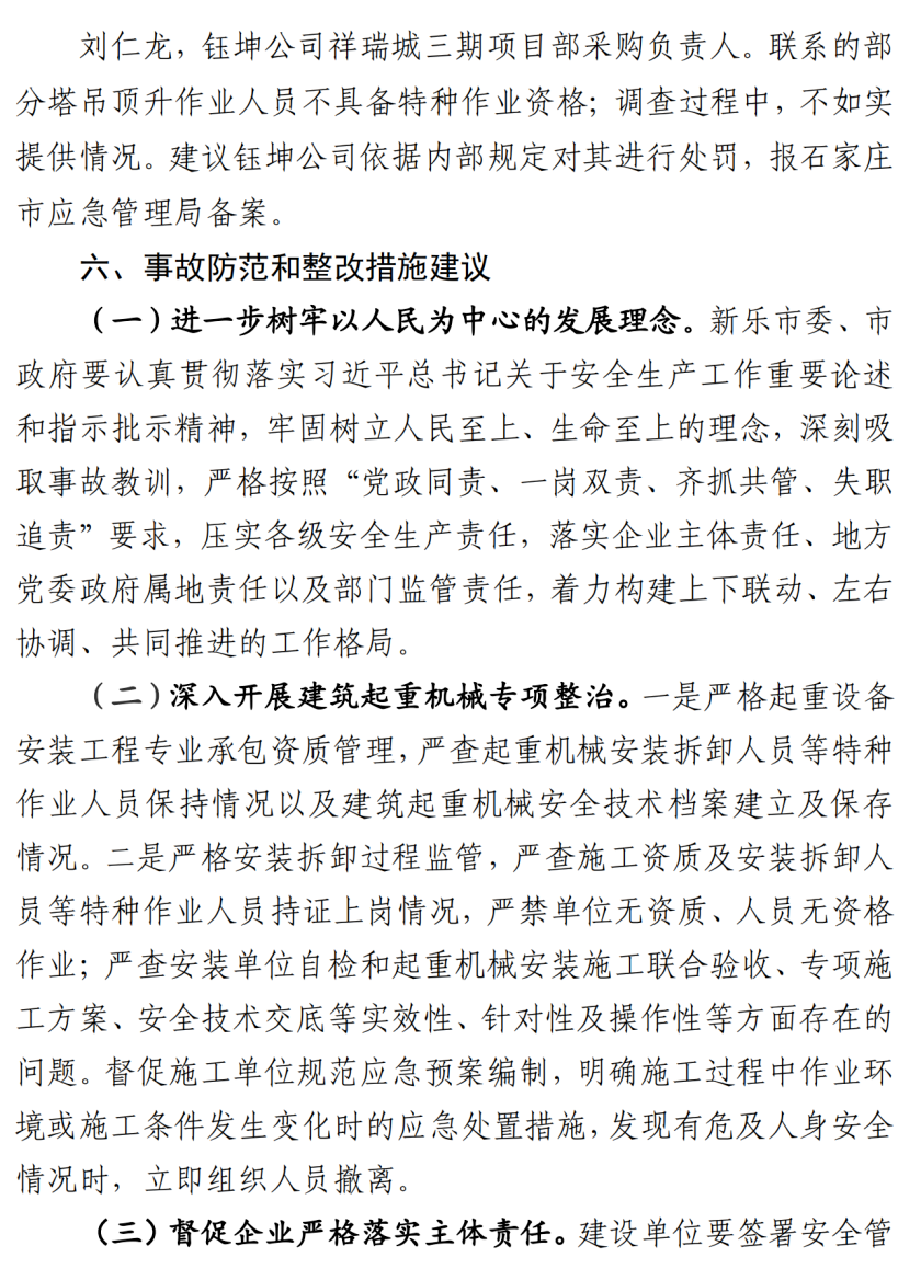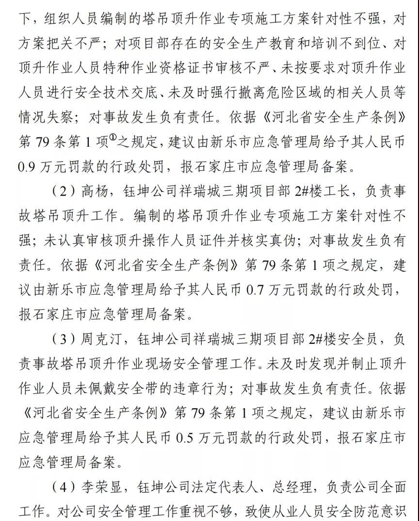 河北石家莊新樂市祥瑞城建筑工地在塔吊頂升作業事故調查報告