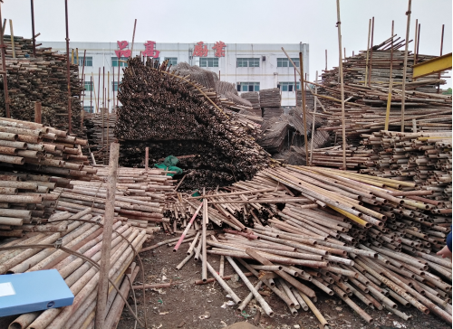 2017年2月19日,林秀銀請來溫依育及溫自群兩名臨時工到其堆放鋼管的場地整理鋼管。工作內容是將散裝鋼管整理并打包。林秀銀租賃的場地兩側均為鋼管堆垛,后方為待整理的散裝鋼管,現場較為凌亂,通道不暢。其中左側鋼管堆垛(事故中發生倒塌的鋼管堆垛)最上方還堆放了高約1.2米的鋼笆片,鋼笆片堆放混亂,也不均衡,容易發生傾倒危險。見下圖二。