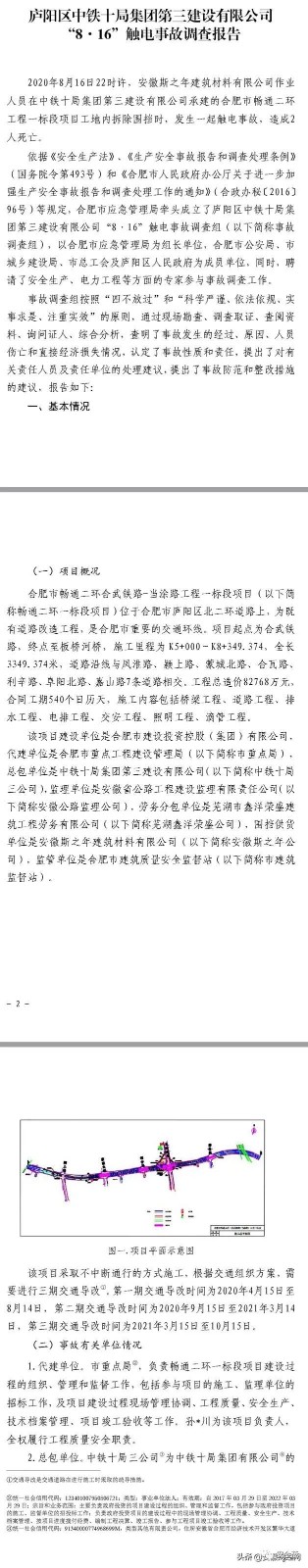 12月2日,合肥應急管理局在其官網發布廬陽區中鐵十局集團第三建設有限公司 “816”觸電事故調查報告。