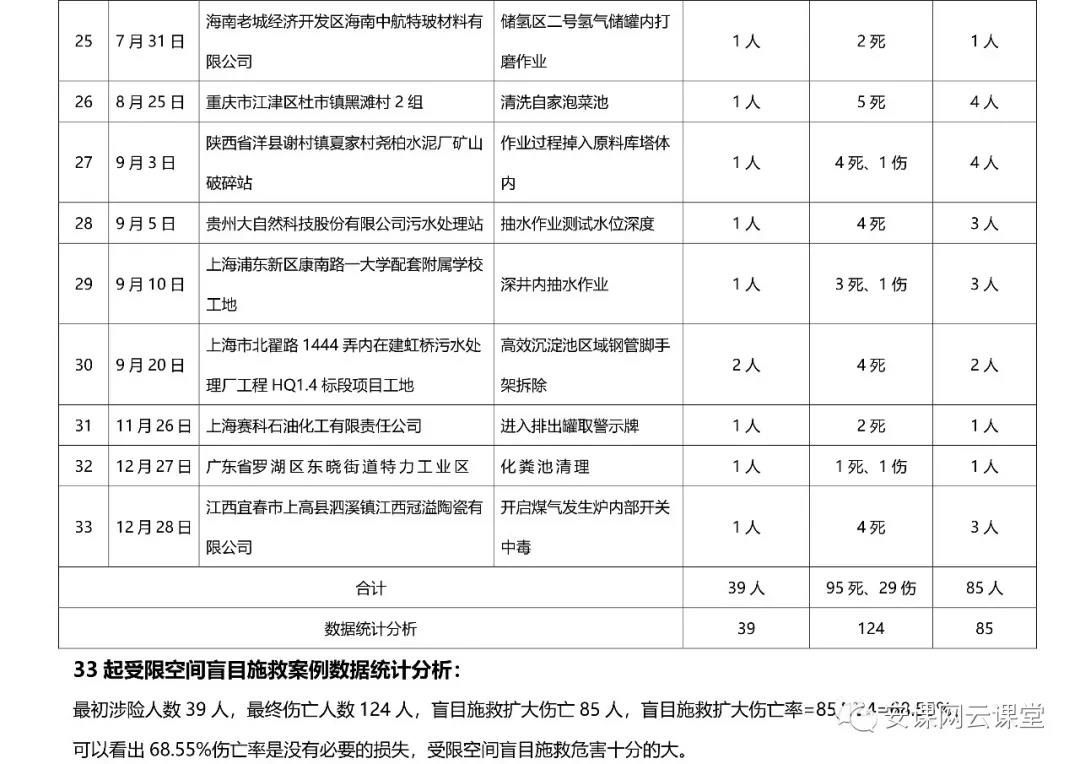 2018年受限空間盲目施救事故統計