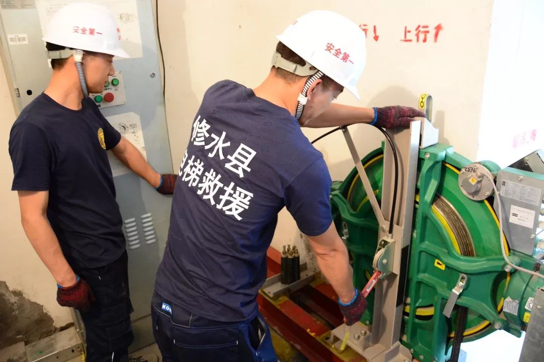 小區(qū)內(nèi)電梯因不正確使用或臨時停電等外部原因發(fā)生困人事故。事故發(fā)生后,被困人員使用轎廂內(nèi)緊急報警裝置向使用單位值班人員求救,值班人員確認(rèn)事故后立即向電梯救援單位聯(lián)系救援,并告知乘客保持鎮(zhèn)靜,救援單位火速趕赴現(xiàn)場,進(jìn)入機(jī)房切斷電梯主電源開關(guān),利用手動盤梯的方式將被困人員順利救出。