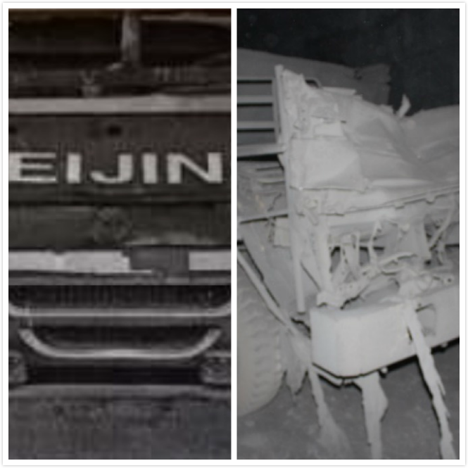 圖4C17號運煤車進礦證件照 圖5 C17號運煤車事故后現場