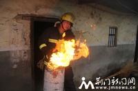 8時30分,消防官兵到達現場,據現場偵察情況發現,房屋內一煤氣罐正向外噴射火焰,引燃了灶臺上的許多物品,煤氣罐隨時可能發生爆炸,造成人員傷亡,情況十分危急。消防戰斗員慕晨曦沒有絲毫猶豫,立即將手套打濕,一把抱起著火的煤氣罐就往外跑。屋外正飄著小雨、刮著風,雖然戴著消防頭盔,可火焰擦過,還是燙紅了他的臉龐。小跑至空曠地帶后,慕晨曦才將煤氣罐放下,消防官兵們連忙對罐身噴水降溫,并用濕抹布蓋滅火焰,關閉閥門。在撲滅屋內殘火并確認煤氣罐無復燃可能后,消防官兵收整器材返回。