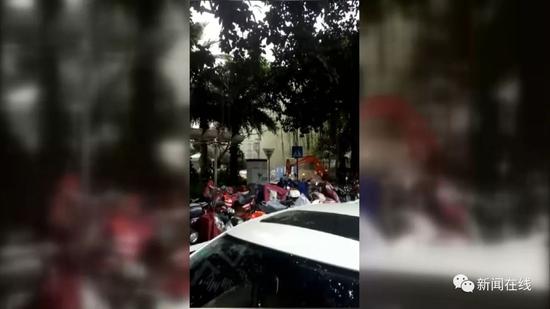 那個煤氣管道(燃氣)沖到樹葉頂了,這么高,然后又聞,那個煤氣好難聞的,然后我就把那個業主全部趕到里頭去,汽車啊,還有那個他們開電動車,我也怕爆炸,我全部趕到1棟去。
